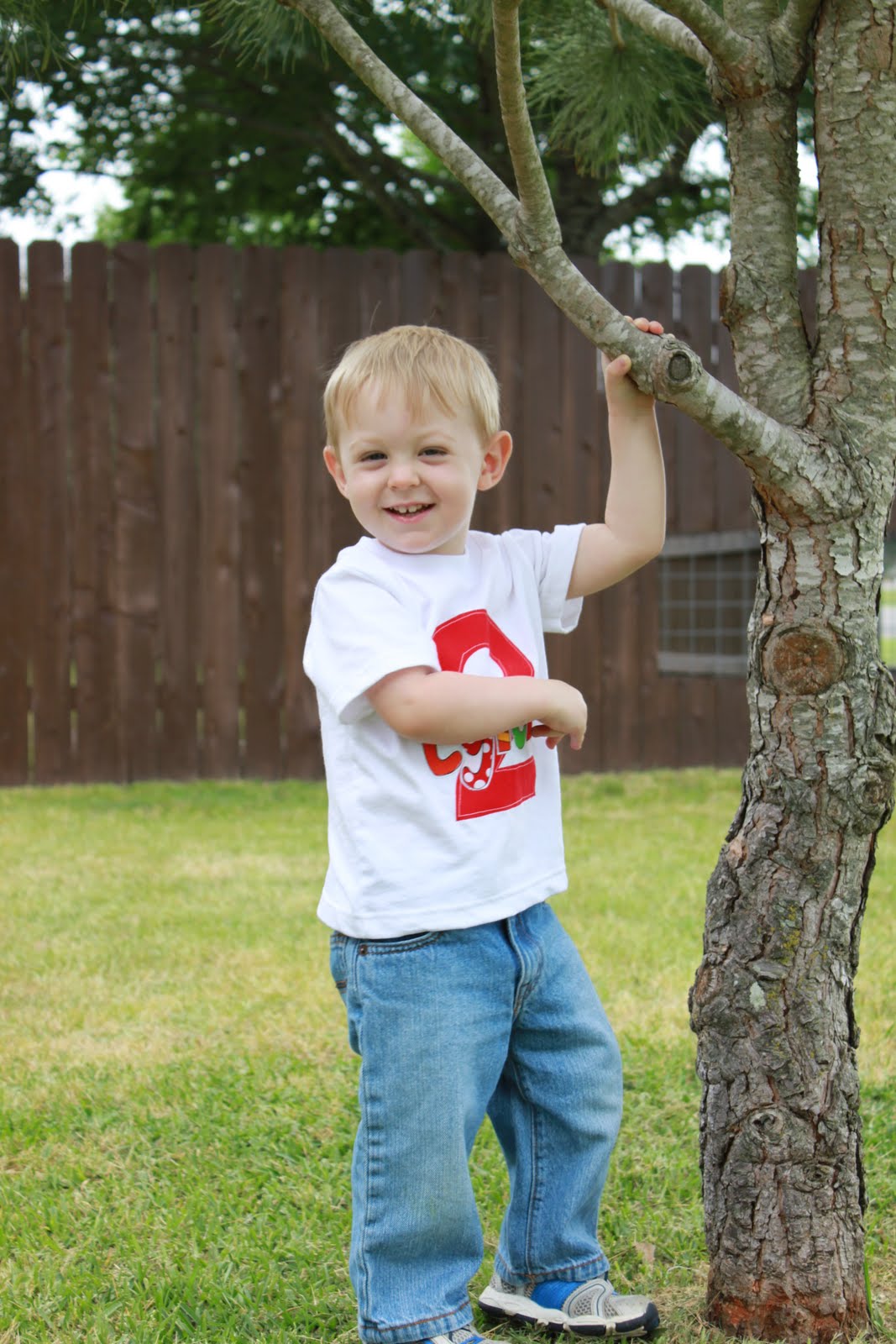 His favorite meal right now is baked chicken, mashed potatoes and corn. He's definitely a Texan- he loves ranch dressing on anything! And of course, he loves any type of dessert. Afterall, he is my child! His new favorite show is Max and Ruby and his favorite color is green. He loves picking his nose- seriously, I think there is a magnet on his finger and in his nose- haha. I also noticed a new mole on his leg this month. That makes three total- one on each of his legs and one close to his ear.